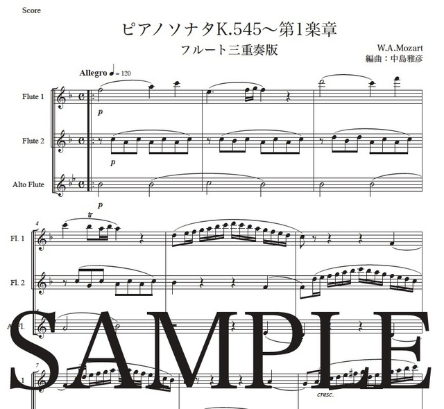 モーツァルト「ピアノソナタK545~第1楽章」フルート三重奏版 コンビニプリント対応