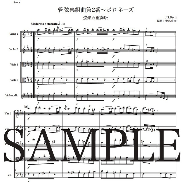 バッハ「管弦楽組曲第2番~ポロネーズ」弦楽五重奏版 コンビニプリント対応