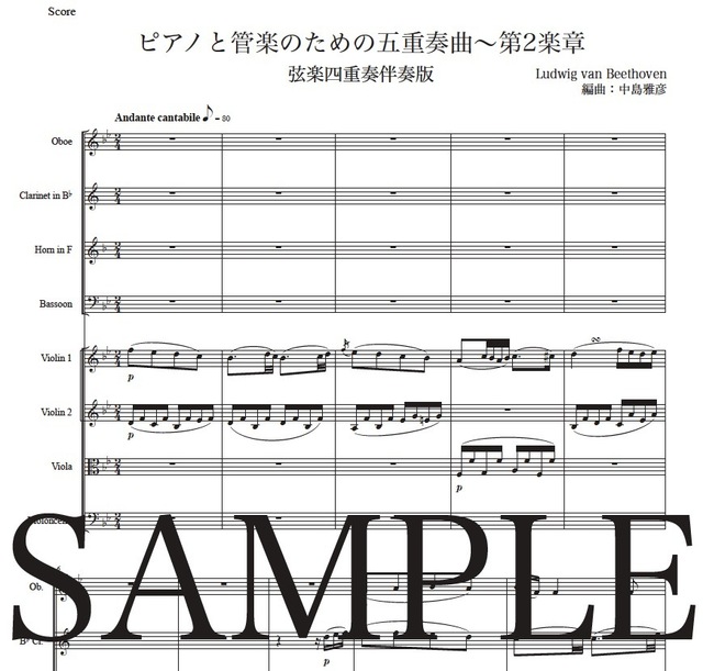 ベートーヴェン「ピアノと管楽のための五重奏曲~第2楽章」弦楽四重奏伴奏版 コンビニプリント対応