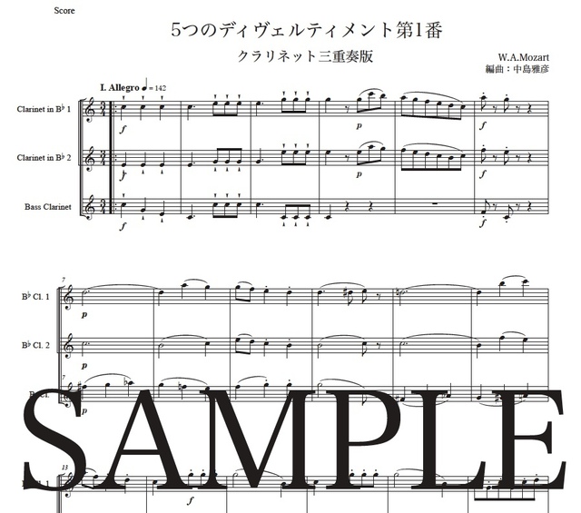モーツァルト「5つのディヴェルティメント第1番」クラリネット三重奏版 コンビニプリント対応