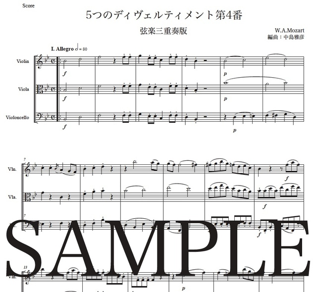 モーツァルト「5つのディヴェルティメント第4番」弦楽三重奏版 コンビニプリント対応