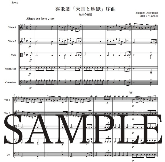 オッフェンバック「天国と地獄~序曲」弦楽合奏版 コンビニプリント対応