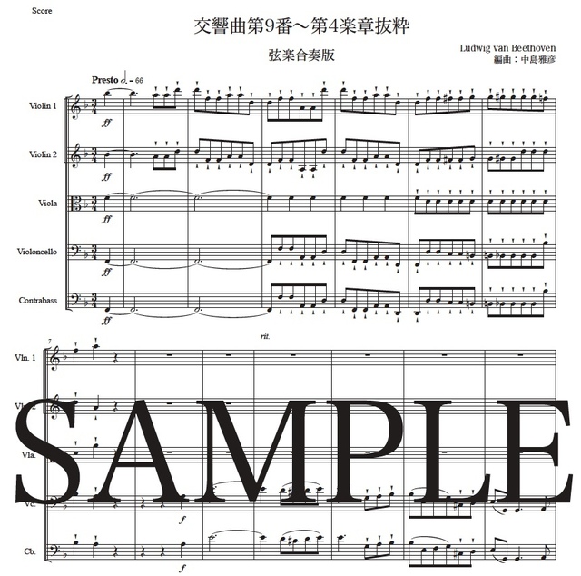 ベートーヴェン「交響曲第9番~第4楽章抜粋」弦楽合奏版 コンビニプリント対応