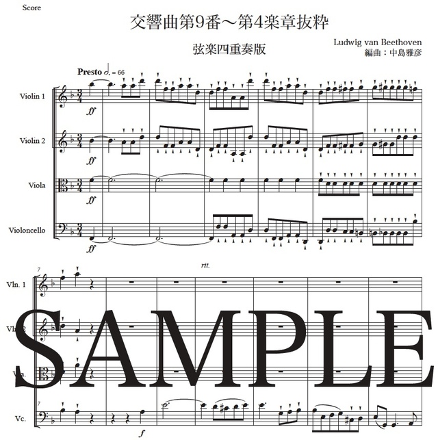 ベートーヴェン「交響曲第9番~第4楽章抜粋」弦楽四重奏版 コンビニプリント対応