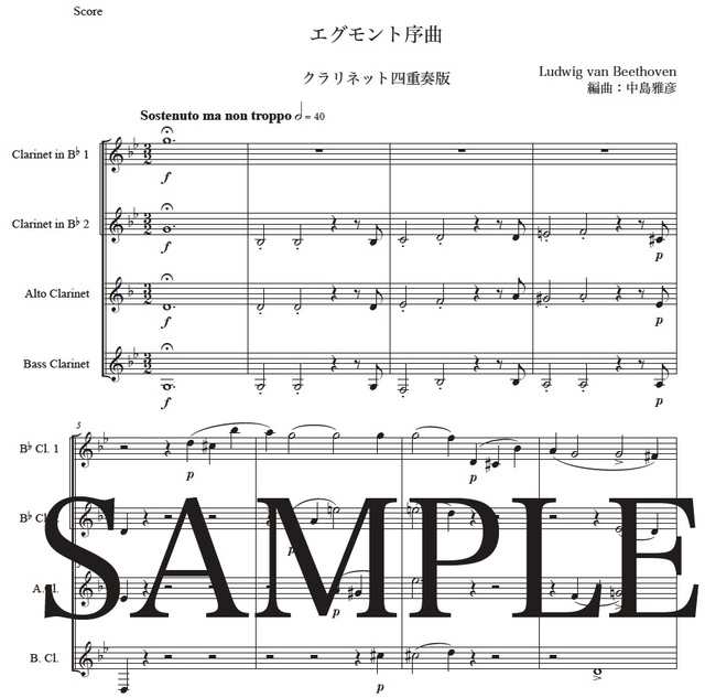ベートーヴェン「エグモント序曲」クラリネット四重奏版 コンビニプリント対応
