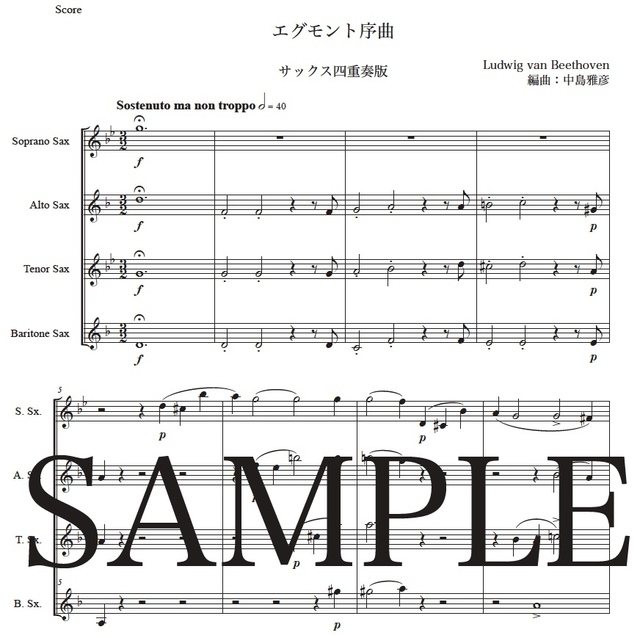 ベートーヴェン「エグモント序曲」サックス四重奏版 コンビニプリント対応