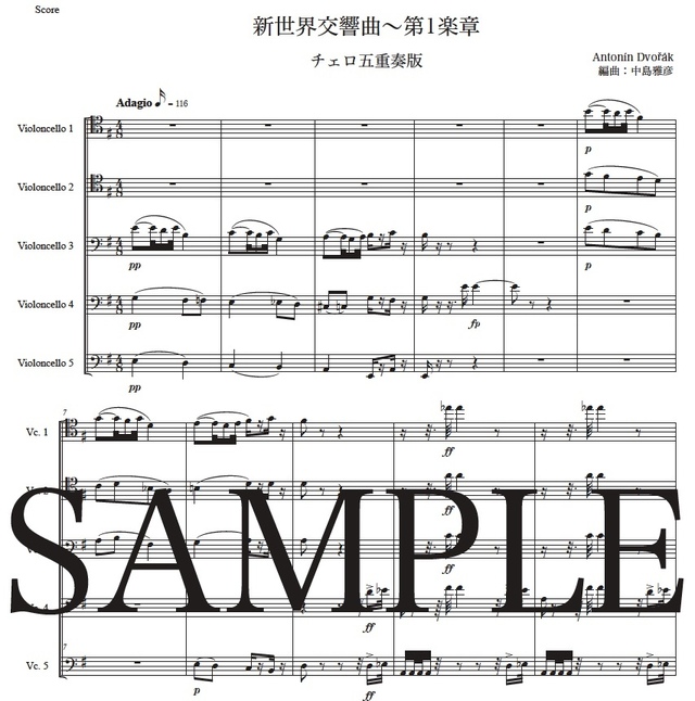 ドヴォルザーク「新世界交響曲~第1楽章」チェロ五重奏版 コンビニプリント対応