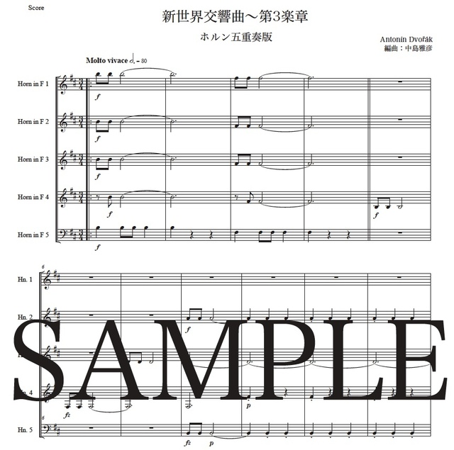 ドヴォルザーク「新世界交響曲~第3楽章」ホルン五重奏版 コンビニプリント対応