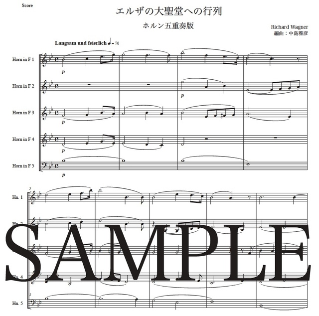 ワーグナー「エルザの大聖堂への入場」ホルン五重奏版 コンビニプリント対応