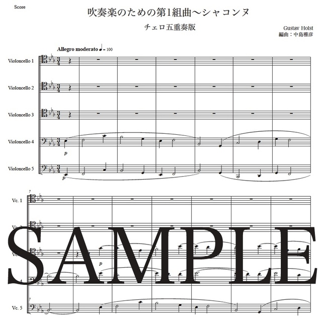ホルスト「第1組曲~シャコンヌ」チェロ五重奏版 コンビニプリント対応