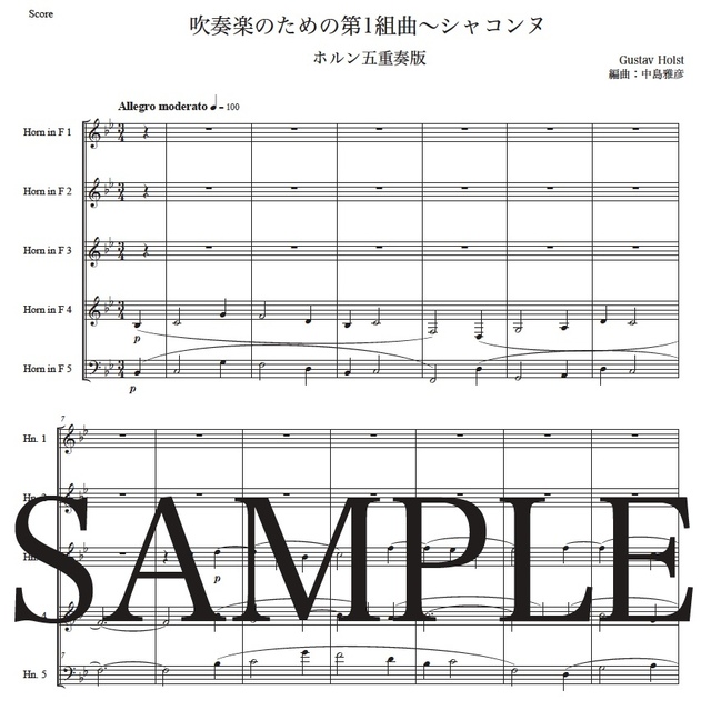 ホルスト「第1組曲~シャコンヌ」ホルン五重奏版 コンビニプリント対応