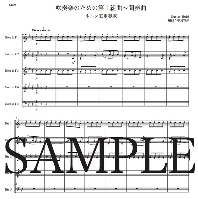 ホルスト「第1組曲~間奏曲」ホルン五重奏版 コンビニプリント対応