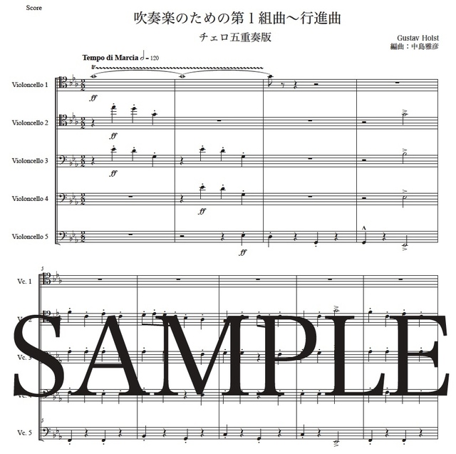 ホルスト「第1組曲~行進曲」チェロ五重奏版 コンビニプリント対応