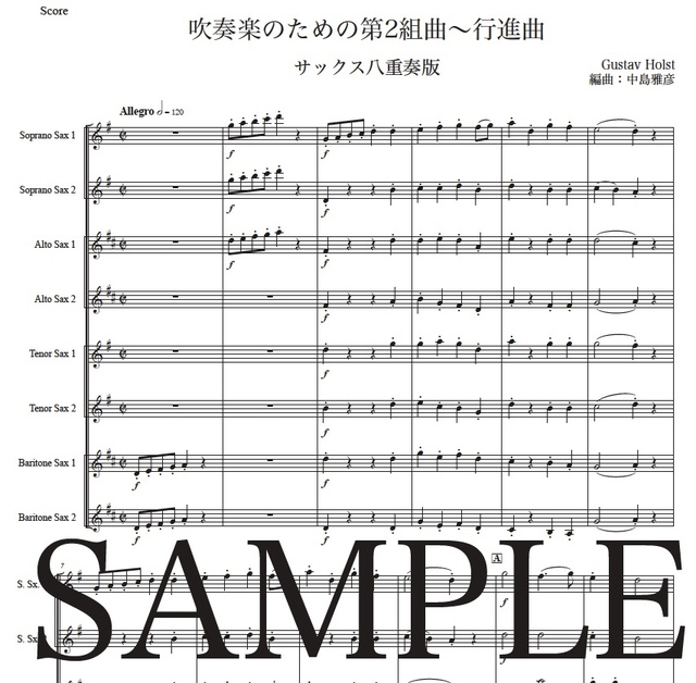 ホルスト「第2組曲~行進曲」サックス八重奏版 コンビニプリント対応