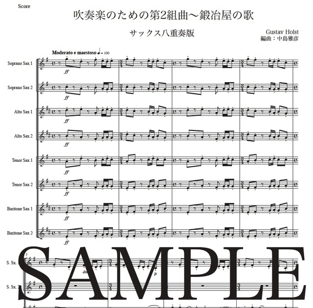 ホルスト「第2組曲~鍛冶屋の歌」サックス八重奏版 コンビニプリント対応