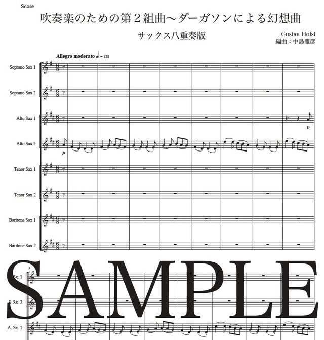 ホルスト「第2組曲~ダーガソン」サックス八重奏版 コンビニプリント対応
