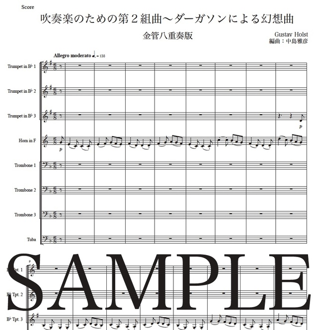 ホルスト「第2組曲~ダーガソン」金管八重奏版 コンビニプリント対応