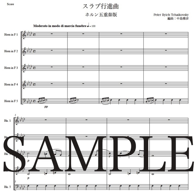 チャイコフスキー「スラヴ行進曲」ホルン五重奏版 コンビニプリント対応