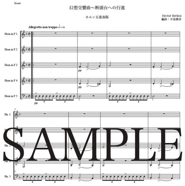 ベルリオーズ「幻想交響曲~断頭台への行進」ホルン五重奏版 コンビニプリント対応