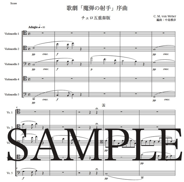 ウェーバー「歌劇『魔弾の射手』序曲」チェロ五重奏版 コンビニプリント対応