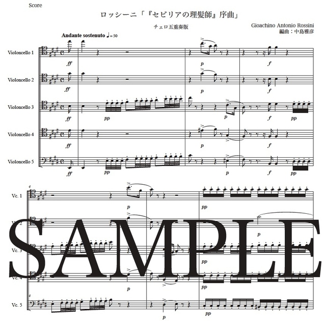 ロッシーニ「セヴィリアの理髪師~序曲」チェロ五重奏版 コンビニプリント対応