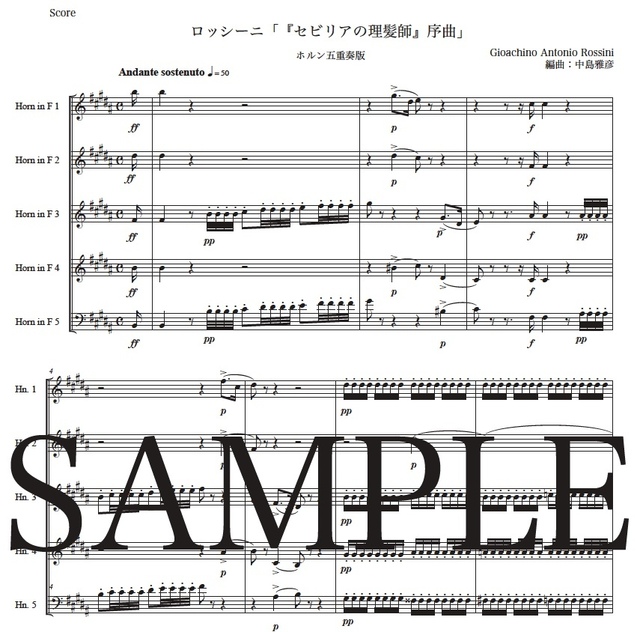 ロッシーニ「セヴィリアの理髪師~序曲」ホルン五重奏版 コンビニプリント対応