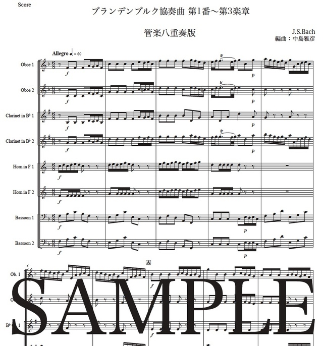バッハ「ブランデンブルク協奏曲第1番~第3楽章」管楽八重奏版 コンビニプリント対応