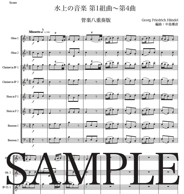 ヘンデル「水上の音楽 第1組曲~第4曲」管楽八重奏版 コンビニプリント対応