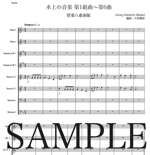 ヘンデル「水上の音楽 第1組曲~第6曲」管楽八重奏版 コンビニプリント対応