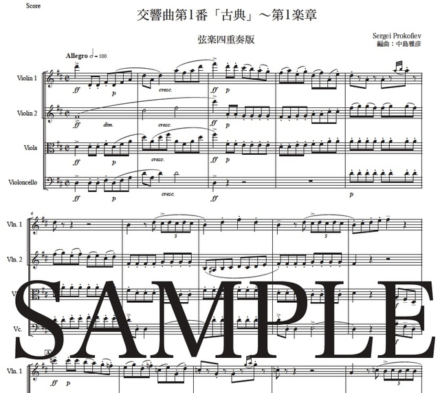 プロコフィエフ「古典交響曲~第1楽章」弦楽四重奏版 コンビニプリント対応