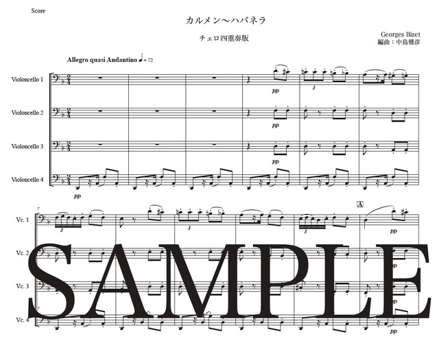 ビゼー「カルメン~ハバネラ」チェロ四重奏版 コンビニプリント対応