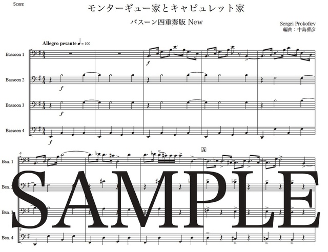 プロコフィエフ「モンターギュー家とキャピュレット家」バスーン四重奏版 コンビニプリント対応