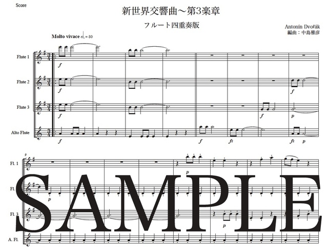 ドヴォルザーク「新世界交響曲~第3楽章」フルート四重奏版 コンビニプリント対応