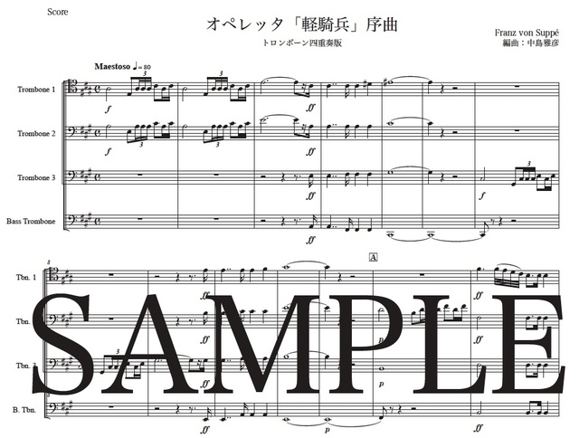 スッペ「軽騎兵序曲」トロンボーン四重奏版 コンビニプリント対応