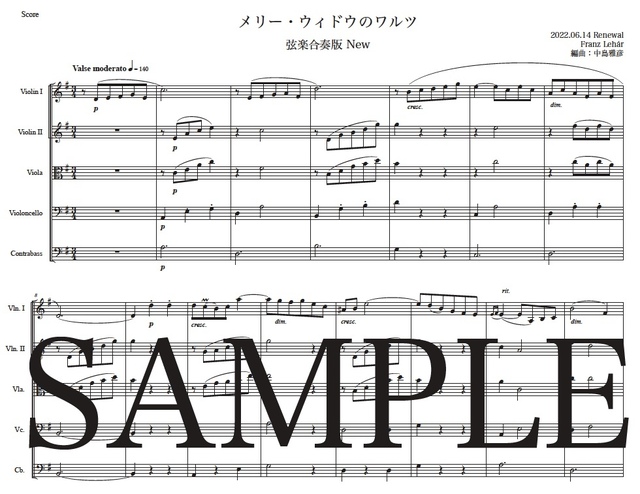 レハール「メリー・ウィドウ~ワルツ」弦楽合奏版 コンビニプリント対応