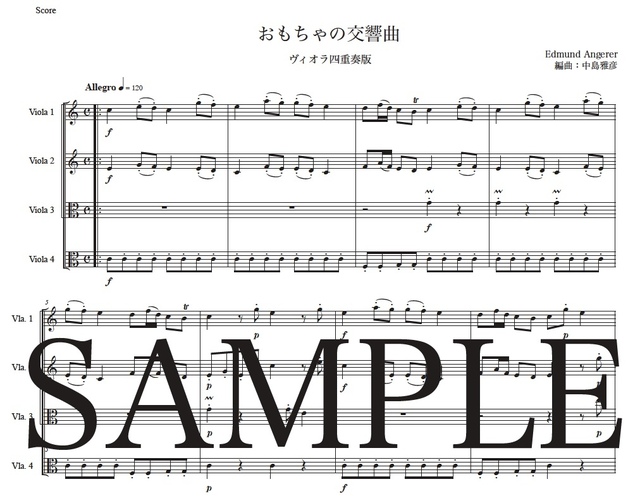 アンゲラー「おもちゃの交響曲」ヴィオラ四重奏版 コンビニプリント対応