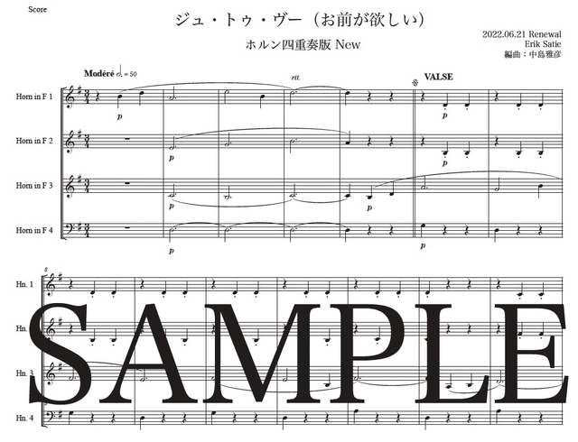 サティ「ジュ・トゥ・ヴー」ホルン四重奏版New コンビニプリント対応